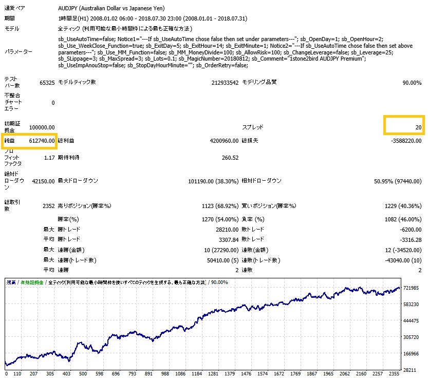 バックテストでは平均の1pipsでシミュレーションをしています。