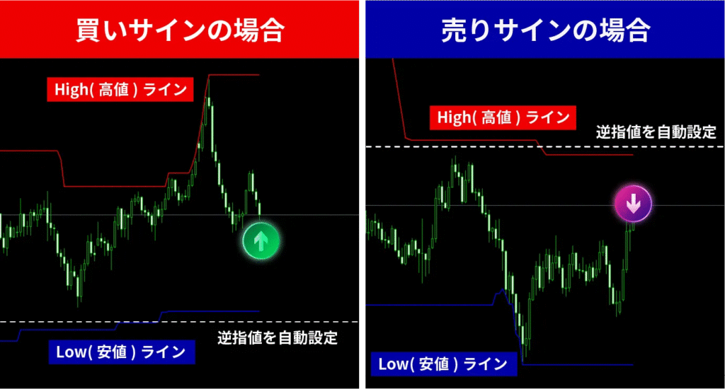 HLバンド損切は「裁量判断不要」でありながらも、状況に応じて損切ラインを自動調整してくれるスマート機能。初心者でも、相場に即したプロ並みの損切運用が可能になります。