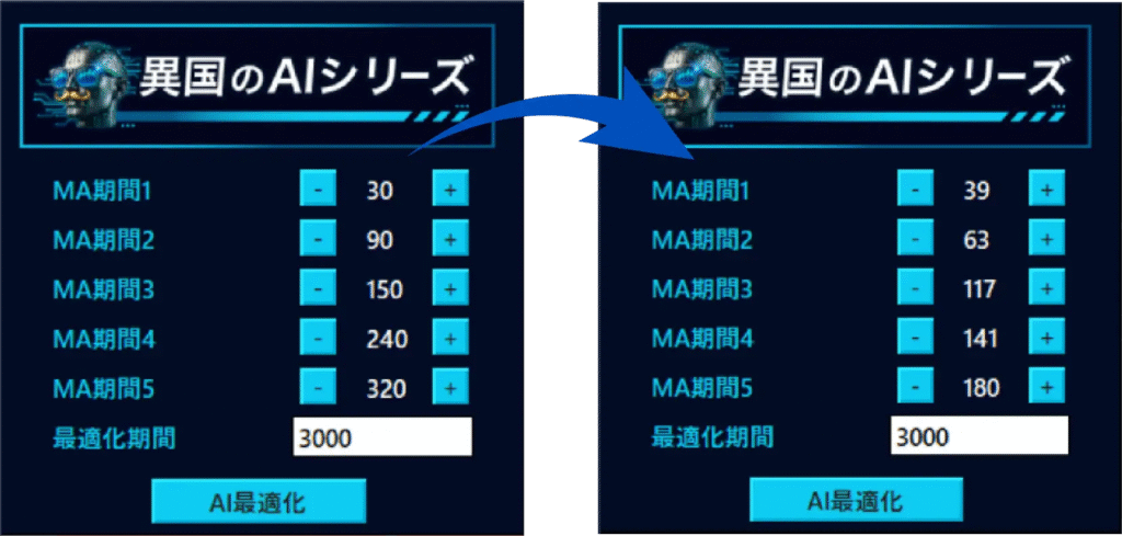 AIに解析させる期間はお好みで変更できます。最適化期間はローソク足の本数を表しています。