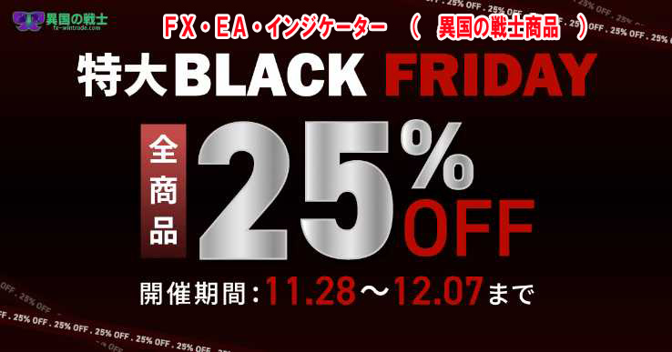 ・割引率:25%OFF 過去最安値でインジケーター・EA・便利ツールを購入できまず。