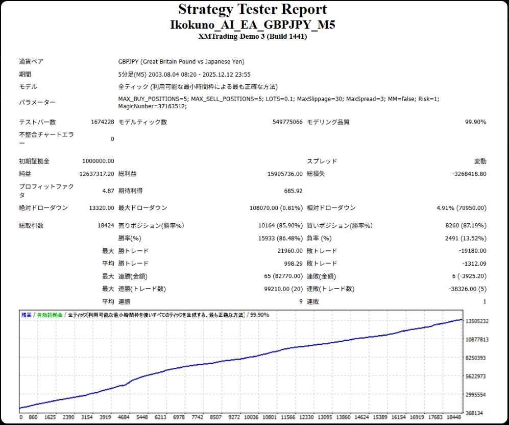 EA販売によくある「バックテストは右肩上がりだが、買った途端に負け始める」というリスクを極限まで低減。未来の相場でも機能する普遍性を追求しました。
