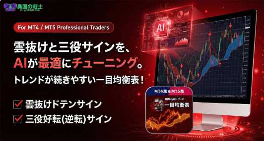 【異国のAI.一目均衡表】で雲抜けサインをプロ仕様にAI.が最適化したインジケーターを無料でダウンロード可能です!