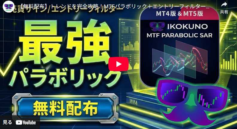 「異国のマルチタイムパラボリック」は、単一時間足の弱点である「ダマシ」を克服するプロ仕様のMT4/MT5版無料インジケーターです。1枚のチャートに上位足と下位足を同時表示し、トレンドに沿った高精度な売買サインを点灯。さらに、エントリーから決済まで迷いづらい基準を提供します。アラート、プッシュ通知、EA化対応など機能も充実しているのも魅力の一つ。