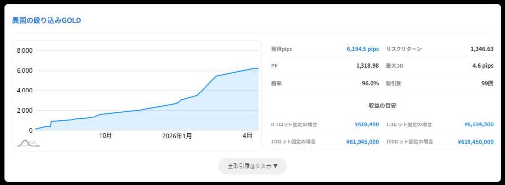 一般に出回っているEAでは、勝率60%を超えれば優秀と言われます。しかし今回【異国の殴り込みGOLD】はそれを遥かに上回る92.24%の高勝率を叩き出しています。これまで培ってきた異国の戦士ののノウハウが光っています。