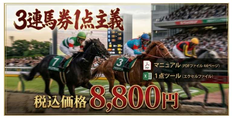 今回ご紹介する新作『3連馬券1点主義』は、その名の通り3連複や3連単の3連系馬券を「1点」で狙い撃つノウハウです。