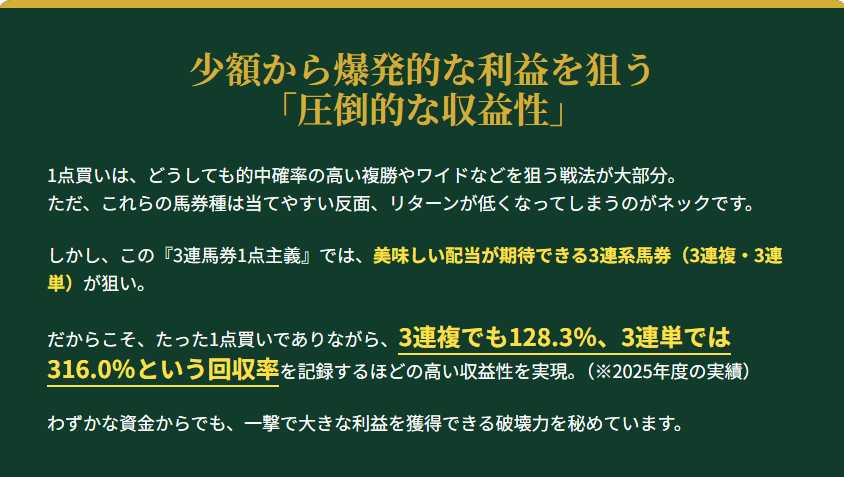 『3連馬券1点主義』の高い的中精度と収益性の秘密。