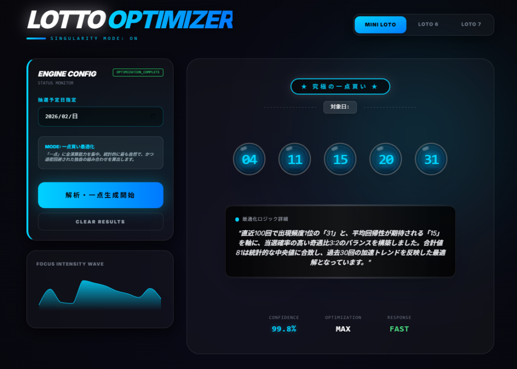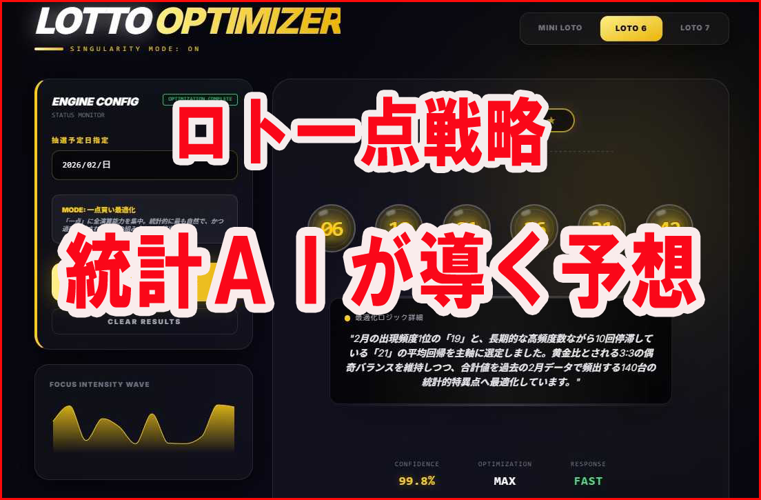 この商品は、ロト(ミニロト・ロト6・ロト7など)の過去当選データを統計的に分析し、“一点買い”に特化した予想番号を提示するネット専用AIアプリです。複数点購入を前提とした一般的な予想ツールとは異なり、「一点に絞る」という明確なコンセプトがあるため、訴求軸を作りやすく、アフィリエイト展開に適した商材です。