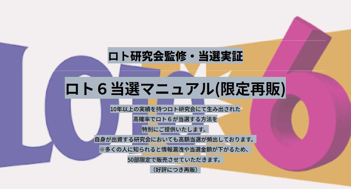そんな方のために、ロト研究会内で長年研究を重ね生み出された「非売品であった高確率当選の法則」を