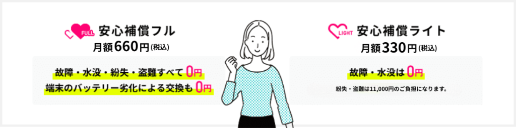 ・安心補償オプションで紛失や盗難、故障などにも対応。